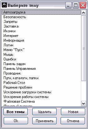 При инсталляции программы Neo Tweaker Professional пользователь может выбрать языковой интерфейс по своему выбору. При запуске программы будет выводится окно, в котором нужно указать одну из тем, параметры которой будут настраиваться. Если вы хотите получить доступ ко всем 365 опциям настройки, доступным в программе Neo Tweaker Professional, выберите пункт Все темы.