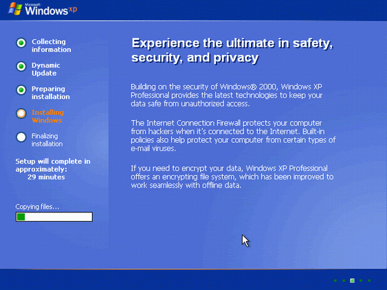 Вы увидите экран, в процессе копирования файлов на этом экране от вас не трубется каких-либо действий, поэтому это замечательная возможность для того, чтобы выпить кофе или подышать свежим воздухом. После окончания копирования файлов система пойдет на перезагрузку.