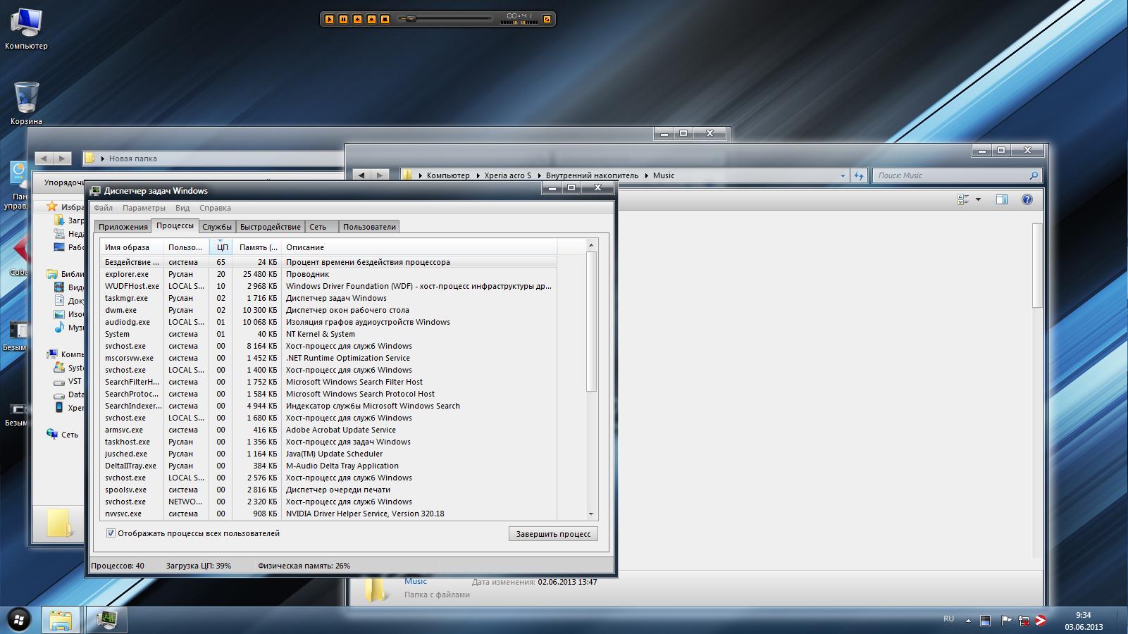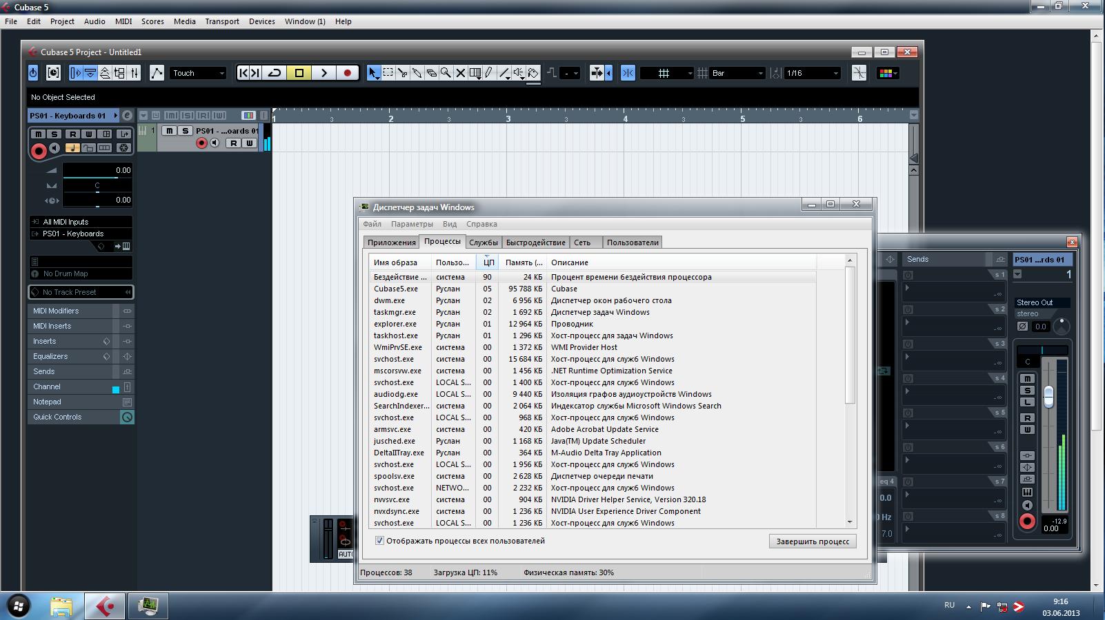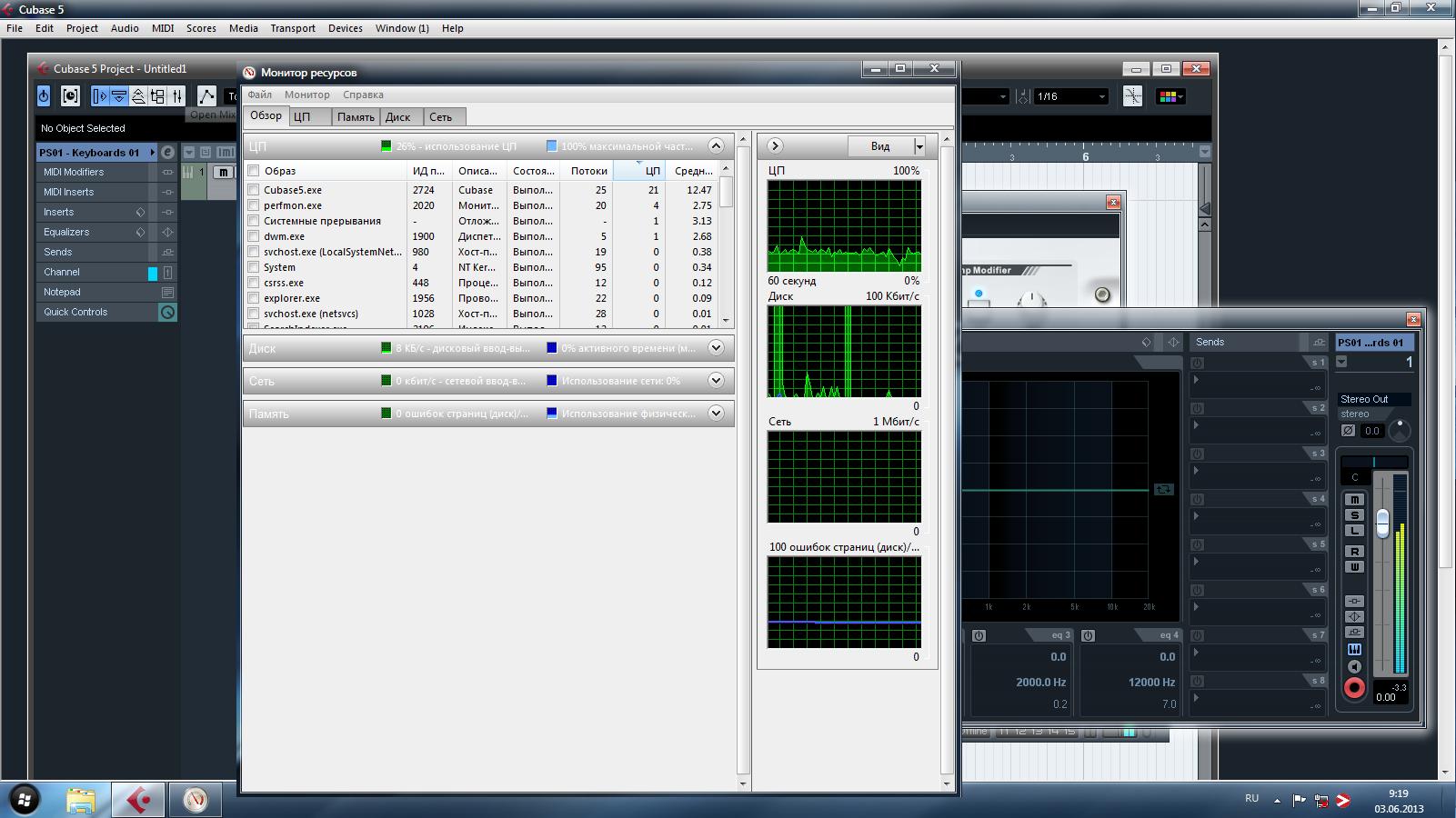 1.При открытии окна настройки трека в Cubase 2.При открытии окна настройки трека в Cubase (монитор ресурсов) 3.При открытии папки через проводник http://forum.oszone.net/attachment.p...1&d=1370231514 http://forum.oszone.net/attachment.p...1&d=1370231514 http://forum.oszone.net/attachment.p...1&d=1370231514 Вроде бы сторонних процессов не наблюдал, которые нагружали процессор Но когда удаляешь драйвера видеокарты заикание пропадает везде |