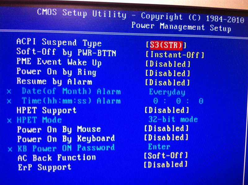 Столкнулся с такой проблемой, GIGABYTE GA-H55M-S2 не хочет выключатся. После завершения работы операционной системы, экран гаснет, а кулеры вращаются! Мои действия: Замена блока питания, чистка контактов процессора, оперативной памяти, подключил мать на весу, прошивал биос, обнулял биос, отключил в биосе в меню (Power Management setup) ACPI Suspend Type - S3(STR) Soft-Off by PWR-BTTN - Instant-Off PME Event Wake Up - выключить Power On by Ring - выключить Power On By Mouse - выключить Power On By Keyboard - выключить AC Back Function- Soft-Off. Отключал USB, ставил новую систему с родными дровами. Вообщем не чего не помогло, комп не выключается, после завершения работы, система завершается гаснет экран, а кулеры все продолжают работать! Помогите разобраться в чем проблема... Выложил фотки с Биоса может там проблема |