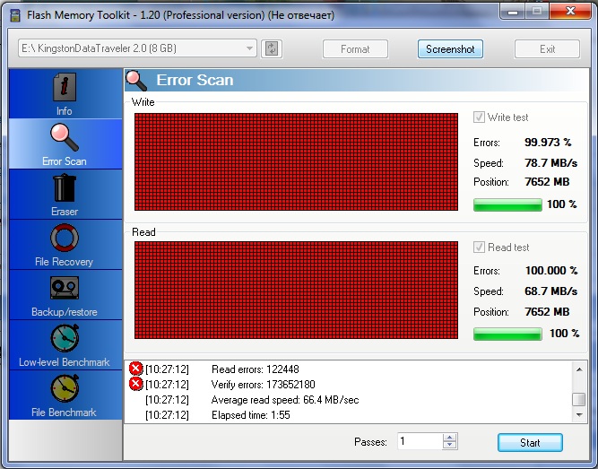 Профиль | Отправить PM | Цитировать тест на чтение/запись показал такой результат (запись и чтение информации невозможны)