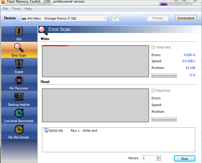 Делаю тест Error Scan Write За полтора часа прогресс 63 мб »