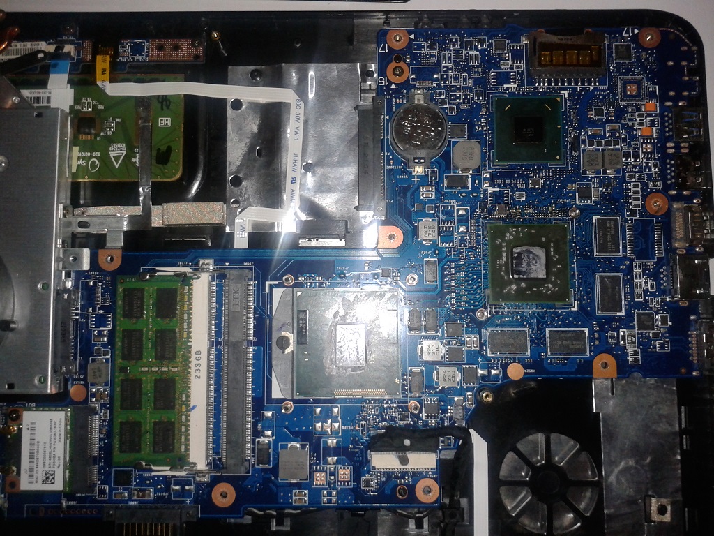 Здравствуйте, уже несколько лет пользуюсь ноутбуком "Toshiba Satellite L650D-120". Вчера вечером выключил его, при этом никаких ошибок не было, но при включении его сегодня , ноутбук отказался включаться. Ноутбук издает звуки, экран остаётся черным, а индикаторы в нижнем углу показывают, что зарядка подключена и заряжается и то, что ноутбук включен, 1 раз моргает индикатор wi-fi, НО индикатор жесткого диска не показывает признаков жизни. Полазив в интернете нашел, что проблема может быть в оперативной памяти или в самом жестком диске. Я пробовал запустить ноутбук без жесткого диска, с одной оперативкой отдельно и отдельно с другой оперативкой, но ничего не изменилось. Благодаря еще одному ноутбуку toshiba проверил и оперативку и жесткий диск. Пытался поставить свои в чужой ноутбук, а с чужого ноутбука в мой. В результате, чужой ноутбук спокойно загружается и работает с моими "внутренностями",а в моем ноутбуке изменений нет, значит проблема явно не в них. Также прочитал, что может помочь перепрошивка BIOS, но к биосу времени сегодня лесть уже нет. В итоге у меня есть 2 вопроса: