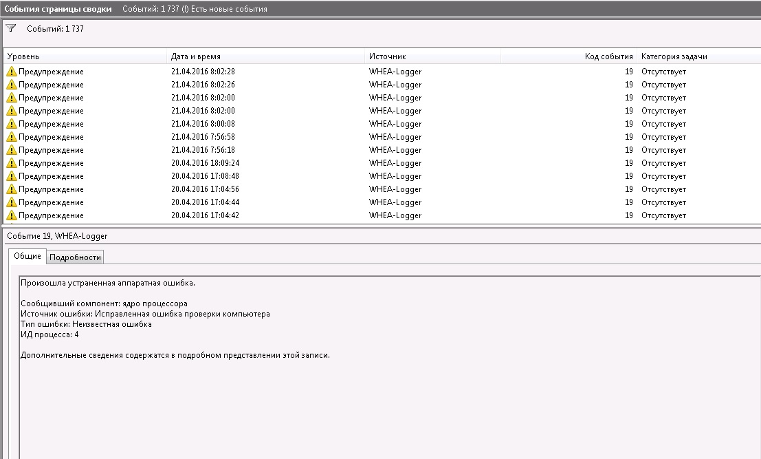 [ Name]  Microsoft-Windows-WHEA-Logger