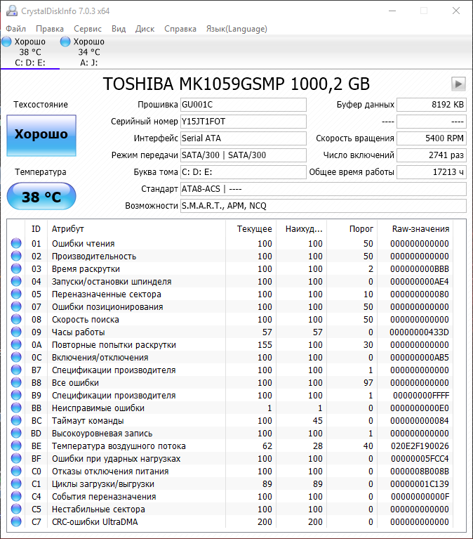 Профиль | Отправить PM | Цитировать GiaNTizmO, Да, есть полсотни переназначенных секторов. Кандидатов на переназначение - нет, что хорошо. Возможно был удар по ноутбуку или переносили его во включенном состоянии.