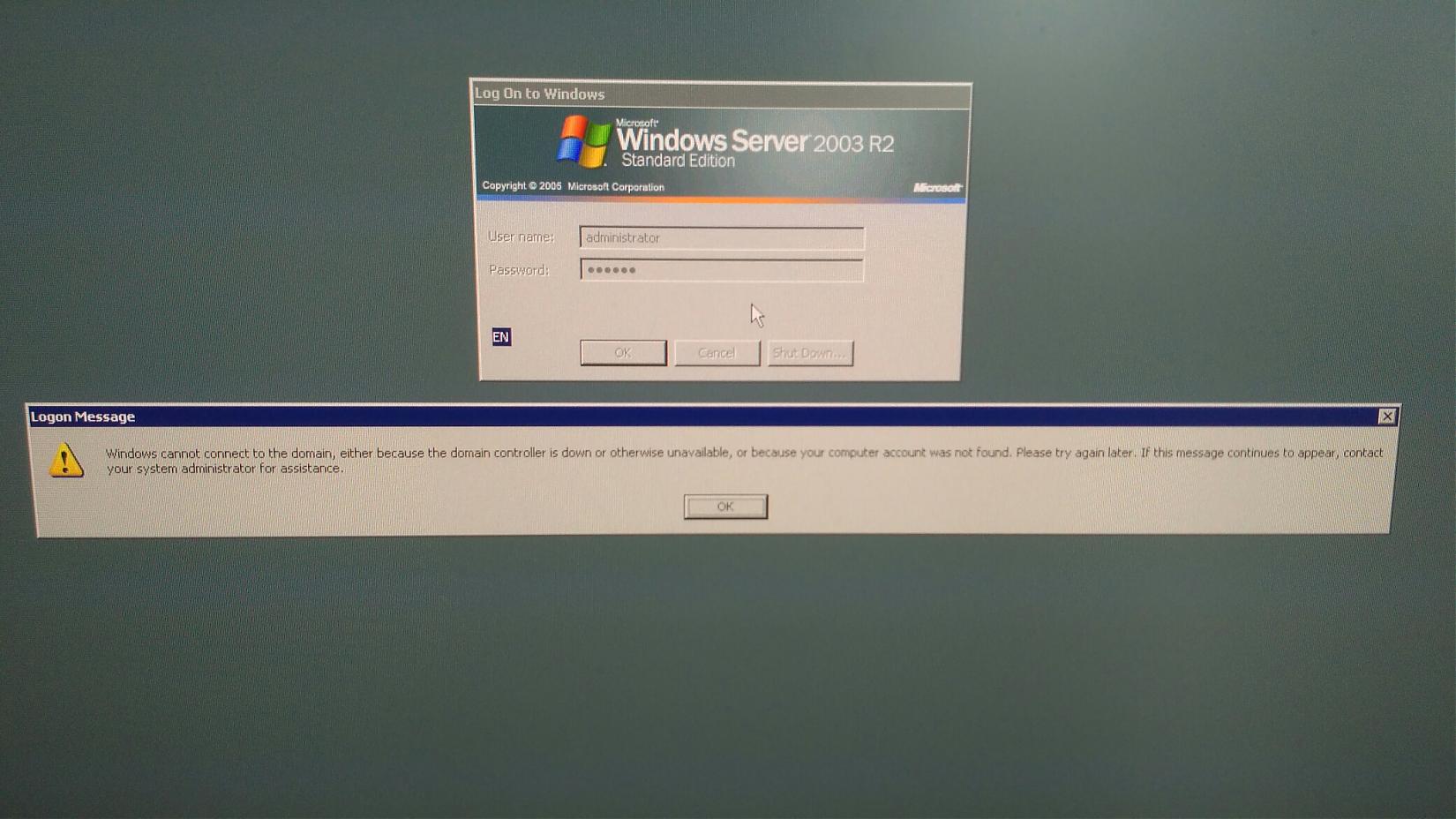 Народ хелп, на серваке win2003 не могу зайти поз УЗ администратора. Сервак не в домене, и выдается вот такое сообщение (см. вложение, за качество фото сорри) Я так понимаю отключена УЗ администратора? Кто может, дайте дельный совет что делать. PS сносить систему естественно не вариант.