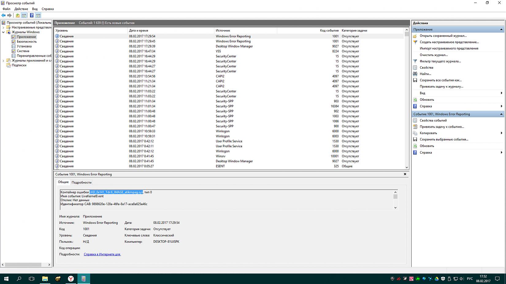 Профиль | Отправить PM | Цитировать Вот скрин из журнала Windows.