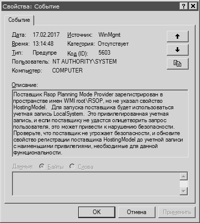 EventID - Код: 5603, источник: WinMgmt