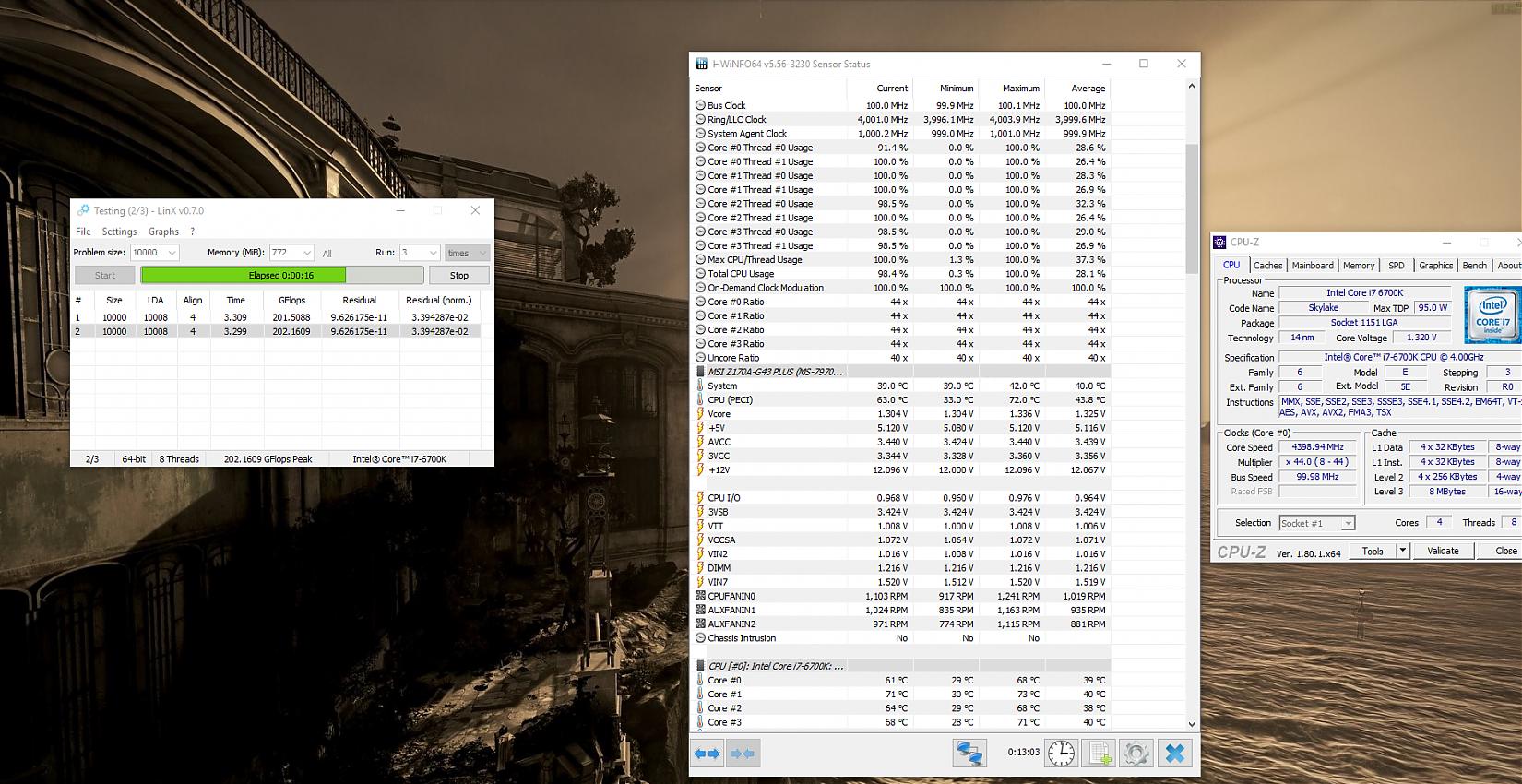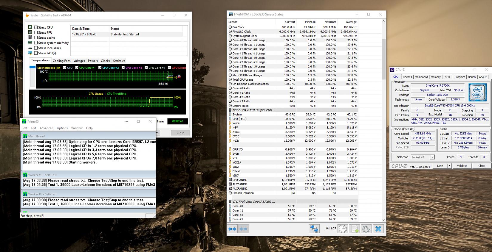 Здравствуйте ,т.к. меня не устраивало, что в стоке с включённым турбо бустом при 100% загрузке проц набирал 1.344 V, я решил погнать его в ручную до разумных 4.4 . Мой конфиг есть в профили, только добавлю что кулер у меня Scythe Ninja 4 . Постараюсь прикрепить скрины с результатами. Меня смущает, то что как только я выставляю свой множитель,даже если напругу оставить на авто и включённой техналогию степига,то на проце всё время,даже при простое напруга 1.328 V(при этом в простое и при нагрузки температуры в норме). Ещё можно добавить что при 100% нагрузке напруга просидает(временами. Возможно это вылазите моя экономия на материнке,хотя я за неё отдал около 6к рублей+/-1500,но и разгон не 40%) до 1.320(ещё режи 1.304). Вопрос это нормально и можно ли сделать как в стоке что б напруга давалось в зависимости от нагрузки?