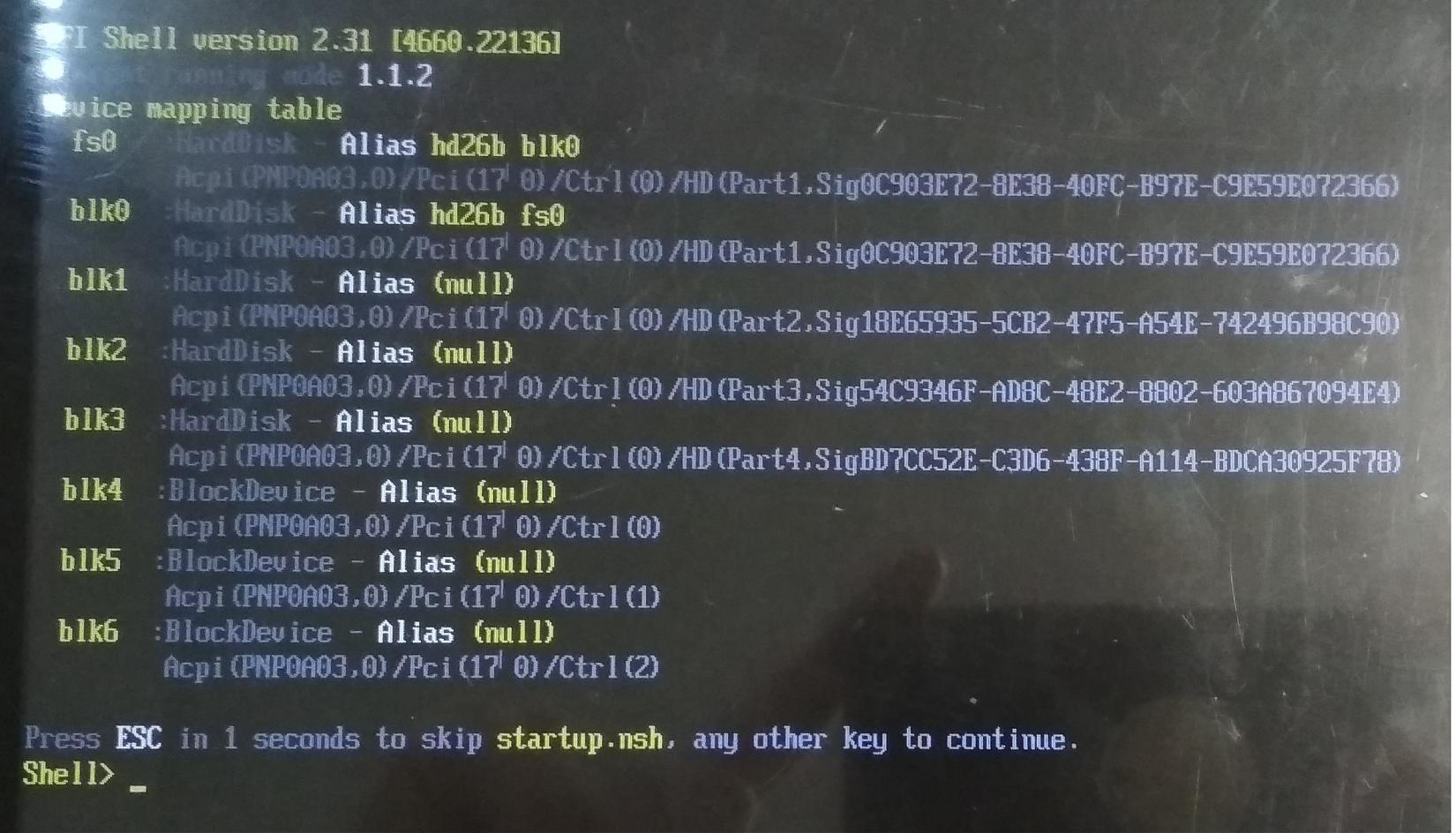 У вас установлена загрузка не Windows Boot Manager, а EFI Shell. »