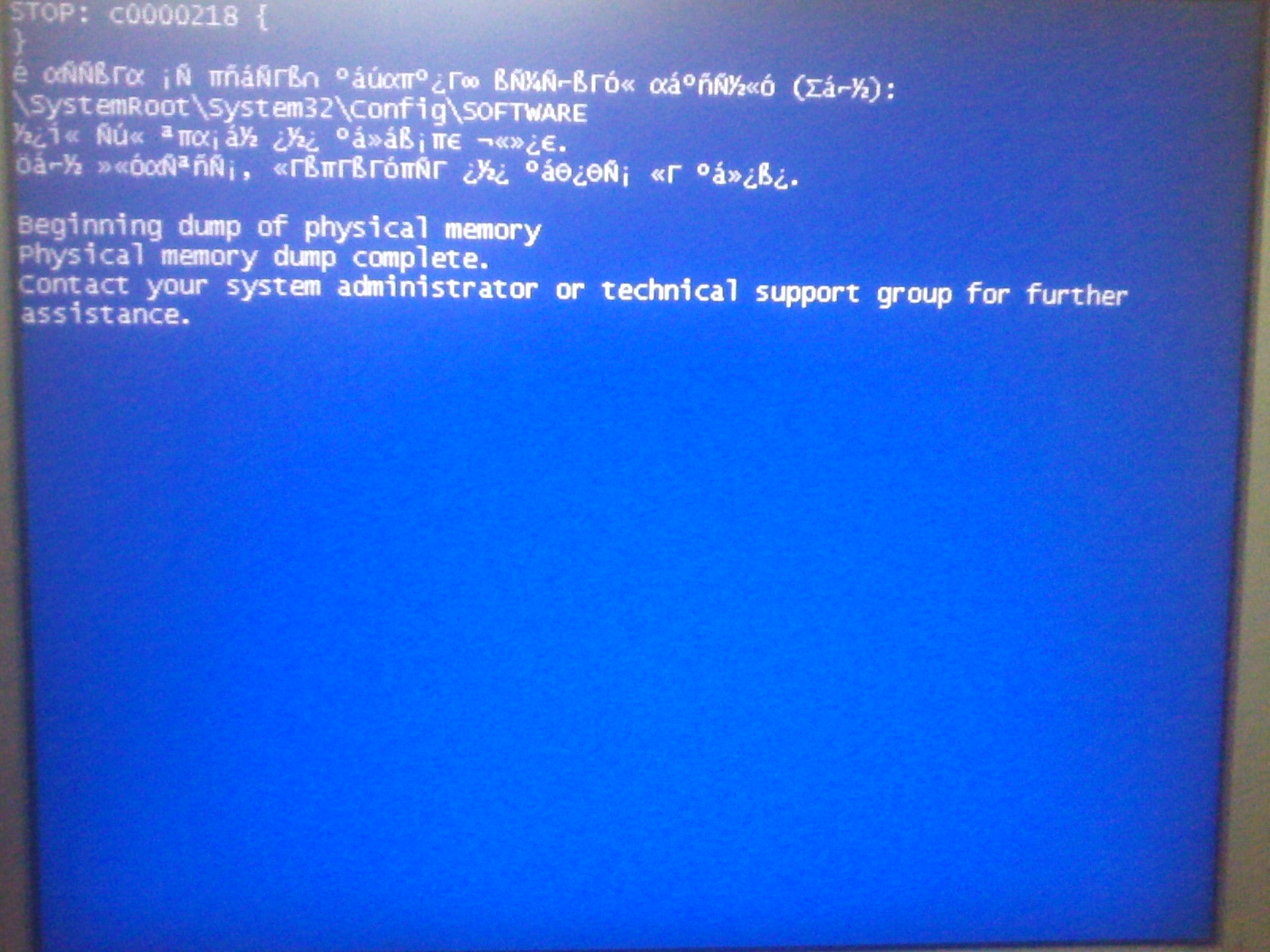 Профиль | Отправить PM | Цитировать В один хмурый и печальный день экран показал синюю смерть. Писал: "Begining dump of physical memory.." и ругался на файл windows\system32\config\software