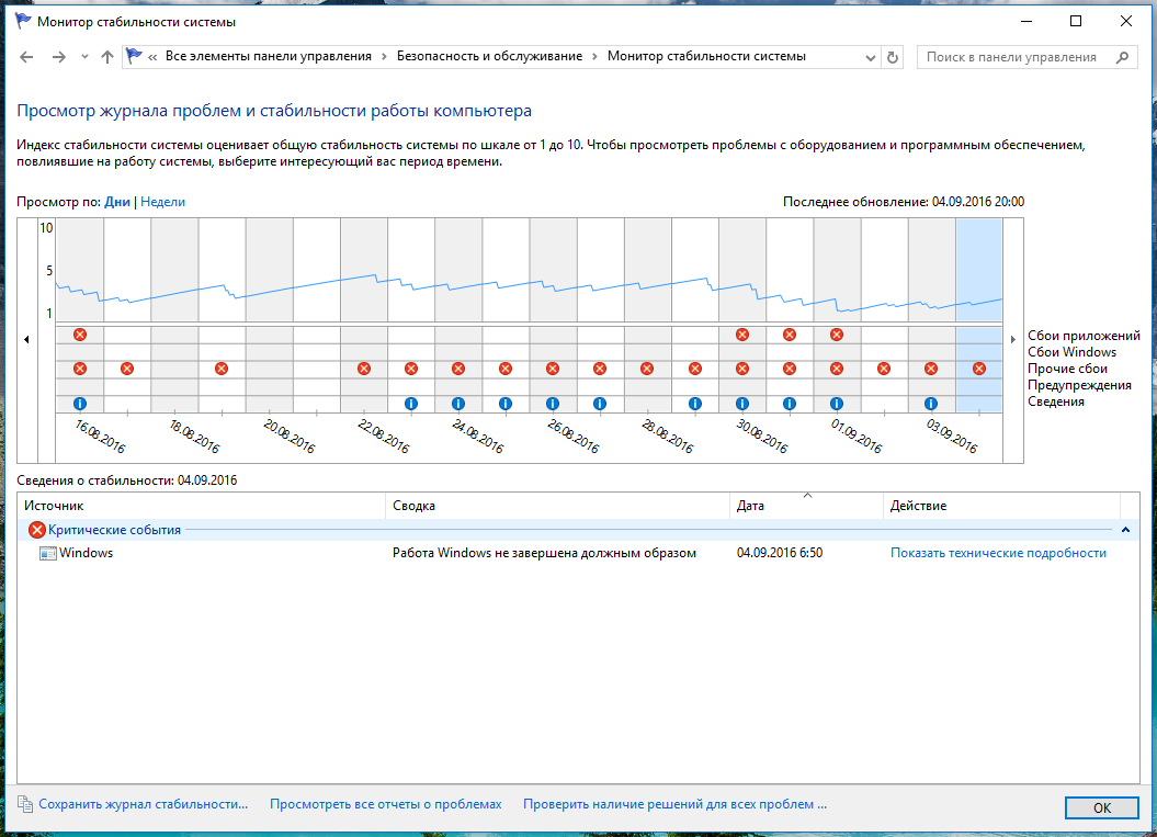 Практически каждое выключение компа сопровождается такой(на скрине) записью в журнале монитора стабильности системы. Показать технические подробности - второй скрин. Железо - 3-й скрин.