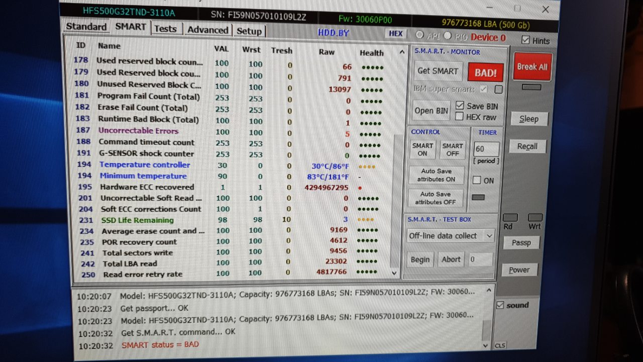 SSD - Hyunix SSD 500 Status Bad