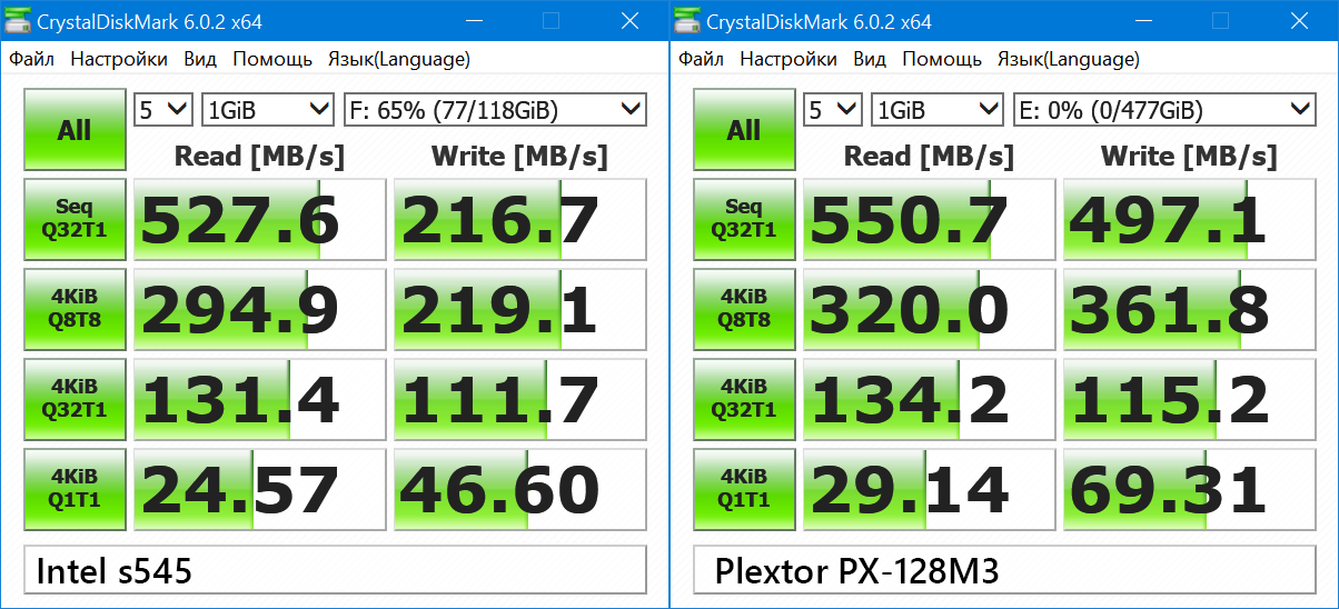 SSD - Результаты теста в CrystalDiskMark 6 SSD Intel s545