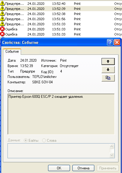 printing1.7z - попытка распечатать пробную страницу из свойств принтера