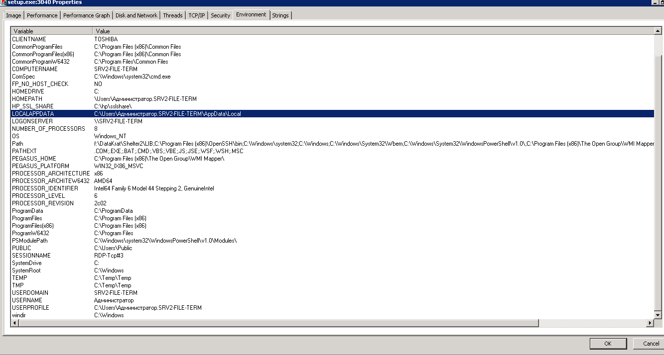 Профиль | Отправить PM | Цитировать Кстати запусти любой из установщиков, и параллельно включи Process Explorer. Там пкм на процессе и на вкладке Environment проверь какую именно папку он считает своей рабочей, а лучше сюда скриншот выложи.