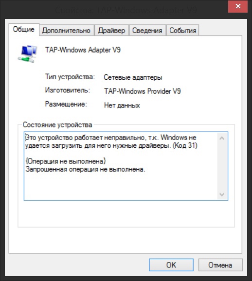 Драйвер - Проблема с установкой tap windows adapter v9