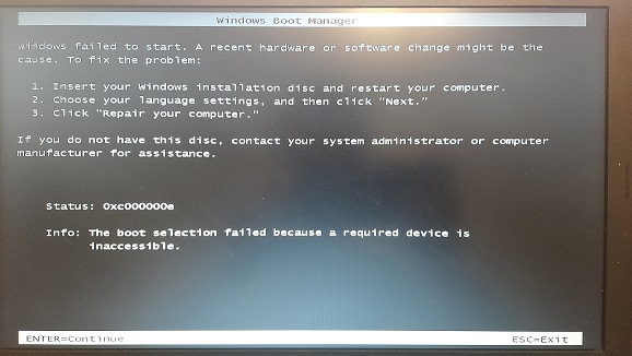 Здравствуйте! Запустил свой ноутбук aser aspire EX2520g-537T. На ноутбуке 2 жестких диска SSD и HDD. После входа в систему появляется сообщение: скриншот 1(если коротко Загрузка не удалась, требуемое устройство недоступно). SSD стоит вместо дисковода с приоритетом загрузки. В чем может быть проблема? Кто с таким сталкивался?