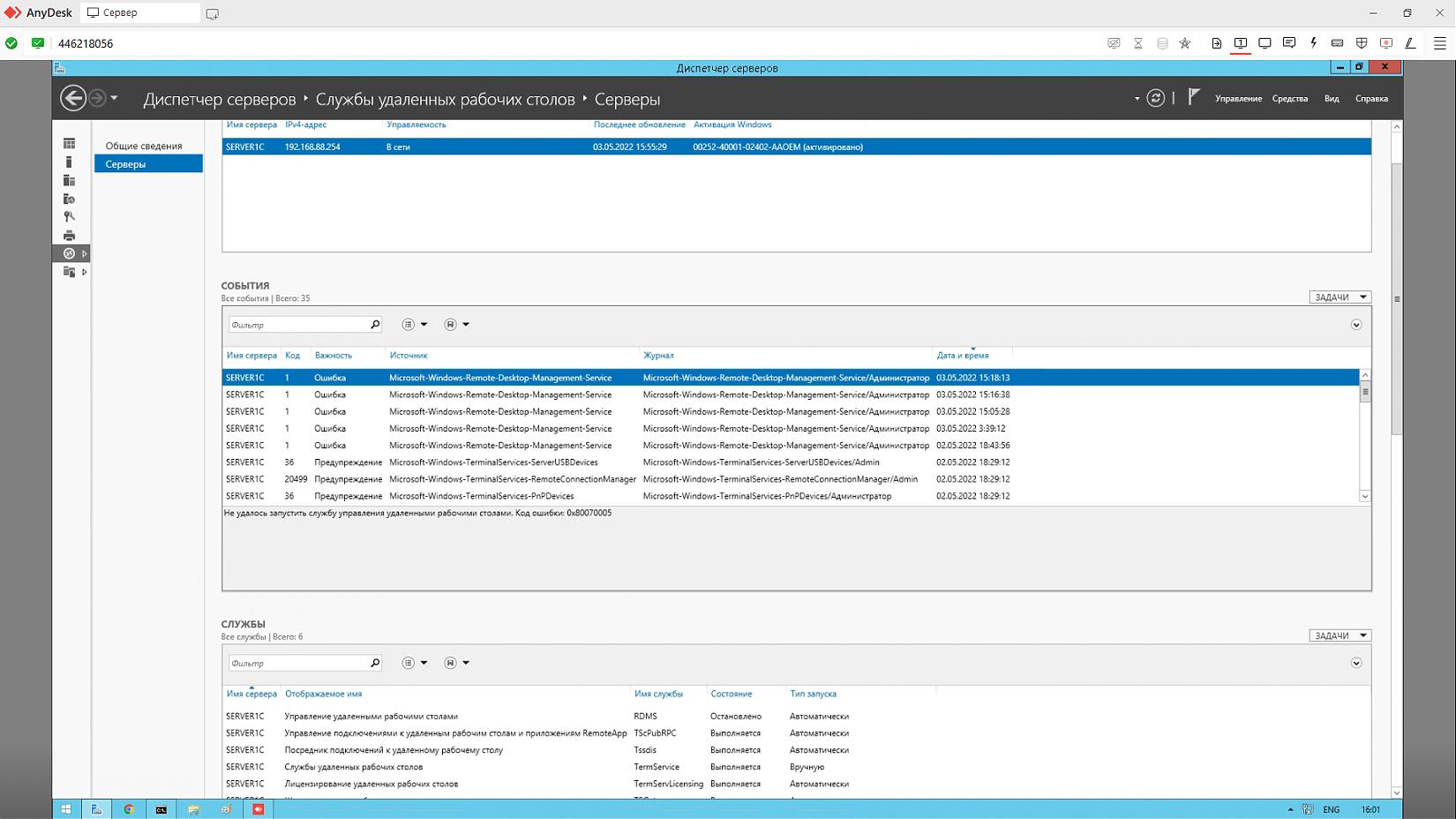 2012 R2 - [решено] Упала служба удалённых рабочих столов (RDMS)