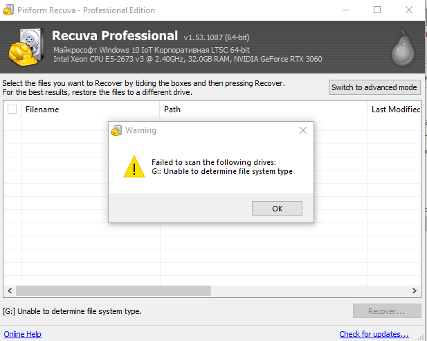 HDD WD10EZEX, в системе отображается, как Диск G. Из программ пробовал Recuva, DMDE и Hetman Partition Recovery. Всё на скриншотах. CrystalDisk этот HDD вообще не видит. Что можно сделать? Или уже проще выкинуть? |