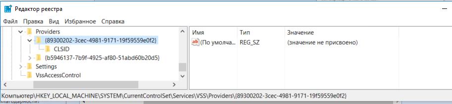 (по умолчанию)    REG_SZ    Microsoft File Share Shadow Copy provider