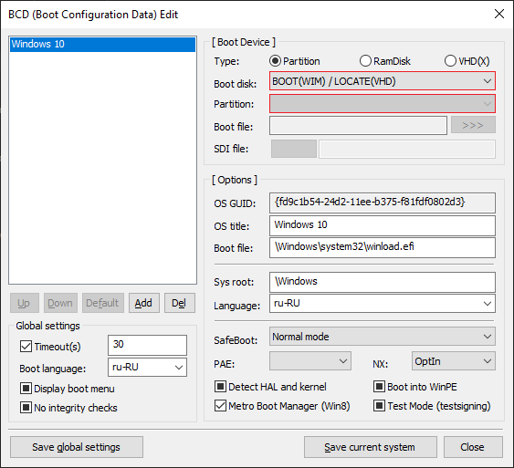 К сожалению, по сути подтвердилось то, во что я изначально вообще отказывался верить: компания Huawei реализовала очень странный механизм восстановления заводской ОС... На скрытом разделе объёмом в 16Гб есть папка, которая по сути представляет из себя копию содержимого ESP-раздела. Не в виде образа или чего-то еще, а просто в виде набора файлов и папок. Соответственно, при восстановлении заводской ОС эти файлы тупо копировались со скрытого раздела на ESP-раздел. Далее. Как известно, в BCD-файле указывается конкретное устройство и конкретный раздел, где нужно искать загружаемую систему. И это не было проблемой, пока в ноутбуке стоял родной SSD, но как только автор темы сменил SSD, то после восстановления заводской ОС он закономерно получил ошибку 0xc000000e (запрашиваемое устройство не найдено), поскольку на ESP-раздел скопировался заводской BCD-файл, в котором был указан старый SSD. А когда он по моему совету поменял GUID нового диска на GUID от старого диска, то ошибка сменилась уже на 0хс0000225 (запрашиваемый раздел не найден), поскольку GUID разделов на старом и новом SSD по понятным причинам тоже отличались. Короче говоря, с помощью BootICE автор темы подправил заводской BCD-файл на Recoverу-разделе, выставив для него нужные параметры: выбрал новый SSD + указал раздел с Windows. После этого заводское восстановление снова заработало, поскольку на ESP-раздел копировался BCD-файл уже с правильными настройками. На всякий случай прикрепил слегка отредактированный скриншот, который показывает суть проблемы (как изначально выглядел заводской BCD-файл на Recovery-разделе с новым SSD). |
