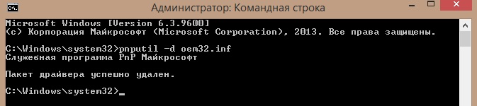 Попробовал в cmd от имени Администратора: pnputil -d oem32.inf