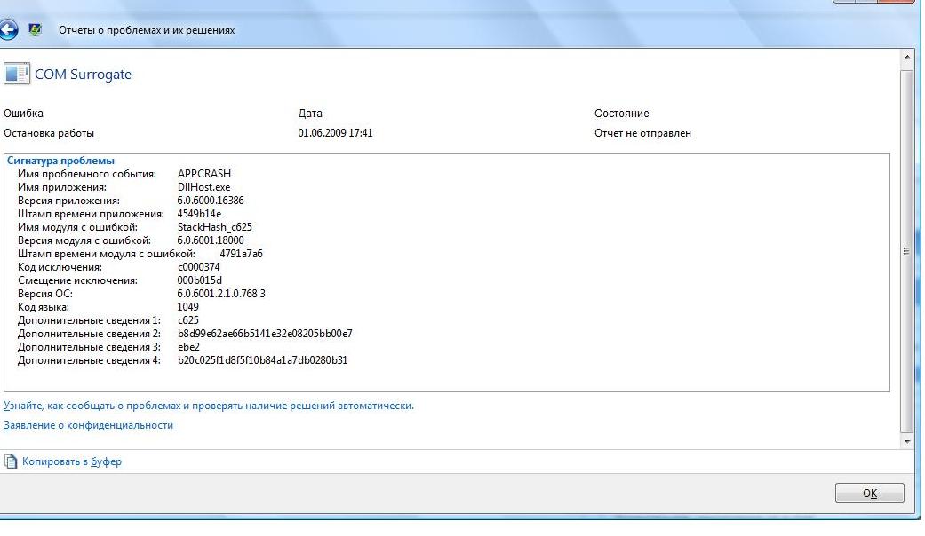 Профиль | Отправить PM | Цитировать для устранения этой ошибки "COM Surrogate" использовал kodeck Vistapackage и больше эта ошибка не появлялась скачать можно с инета google в помошь.установка проста да и драйвера новые устанавливаются