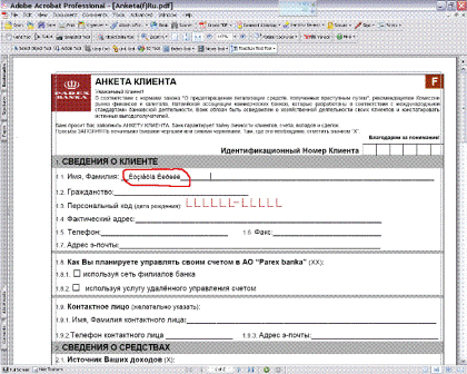Банк прислал анкеты и тд. (формы) в PDF формате - пытаюсь з аполнить нифига не получается !!! Вместо кириллицы кракозябры какие-то ( Акробат седьмой). Помогите - очень надо ![]() |