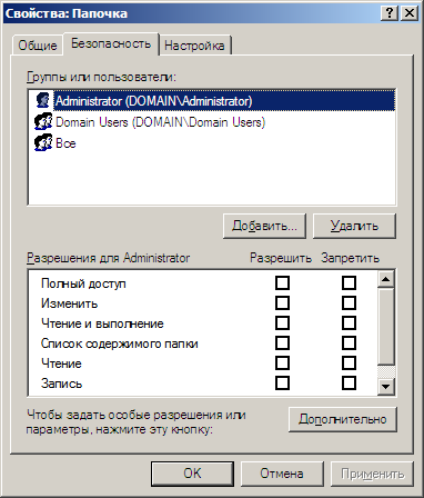 Теперь только разрешения раздать не могу (пытаюсь раздать из клиентской Windows под учёткой доменного админа). Пишет: не удалось сохранить изменения разрешений, отказано в доступе. А выглядят свойства папки вот так: http://forum.oszone.net/attachment.p...1&d=1215775493 У всех записей разрешения пустые, нет ни одной галочки. Да, ещё все русские названия на сервере выглядят как @@@@@@. На клиентских машинах с Windows всё нормально. Можно это как-то вылечить? Локаль переделывать в cp-1251 надо? |