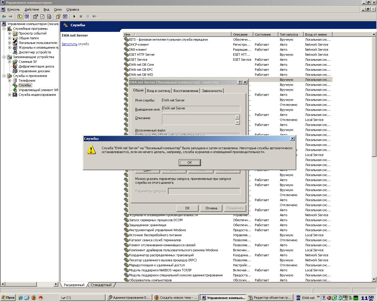 Профиль | Отправить PM | Цитировать Добрый день!!! У меня сейчас не запускается служба EWA Net server. Переустанавливал программу, установилась оболочка, а в дальнейшем никакие действия произвести не могу, про обновление KB956572 знаю, год назад я его блокировал и его у меня нет , но вот сейчас та же история и этого обновления нет. Есть еще какие варианты решения?