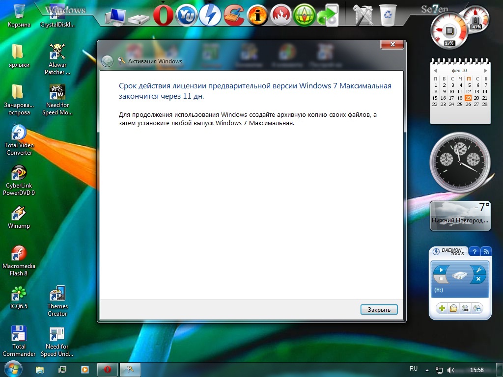 Ребят скажите, что будет по истечение срока? как я понимаю винда не загрузится, если я сделаю архивацию а потом поставлю другую win7 из этого архива всё установленное можно востановить? или же проблему можно решить по другому??? |