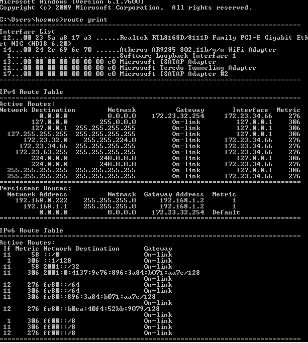 во вложенных файлах - команда "route print" вот такие роутинги у компа при прямом подключении к инету... без роутера...