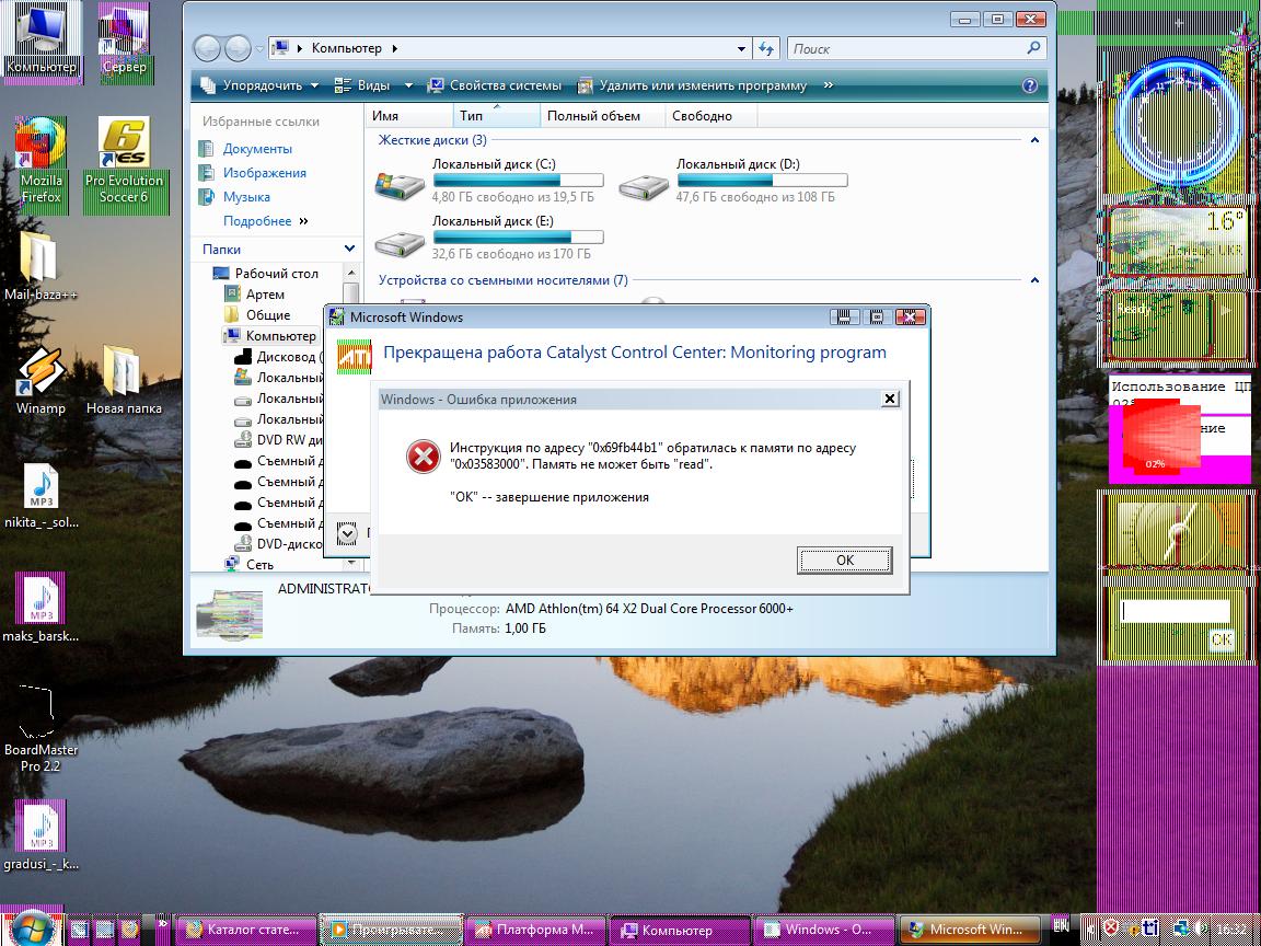 И когда загружается комп то сильно торохтит винчестер, или когда запуская что то как трактор ЧТО ДЕЛАТЬ ПОМОГИТЕ!!!! Я как то смог сфотографировать посмотрите http://forum.oszone.net/images/attach/jpg.gif Я перезагружаю компьютер и появляется синий экран все что я успел увидеть это "disk for crash dump" - что это я не знаю Информация о компе Оперативная система: Windows Vista Ultimate (32 - разрядная операционная система) Видеокарта: ATI Radeon HD 2600 XT Процессор: AMD Athlon (tm) 64 X2 Dual Core Processor 6000+ (3,01 GHz) Жесткий диск: WDC WD32 00AAJS-00VWA SCSI Disk Device Материнская плата: ASUS Память (RAM): 1ГБ Звук: High Defintion Audio |