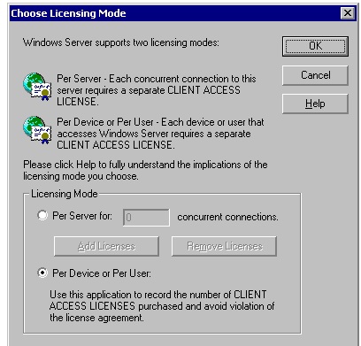 Были куплены Windows Server Cal 2003 DvcCal Используется режим лицензирования - per device. В закладке Licensing - Clients перечень доменных пользователей . Выглядит так как вроде бы это режим per user. При попытке добавить новую лицензию один и тот-же выбор для per device и per user. Как определить тип лицензирования и как изменить его на per device? |