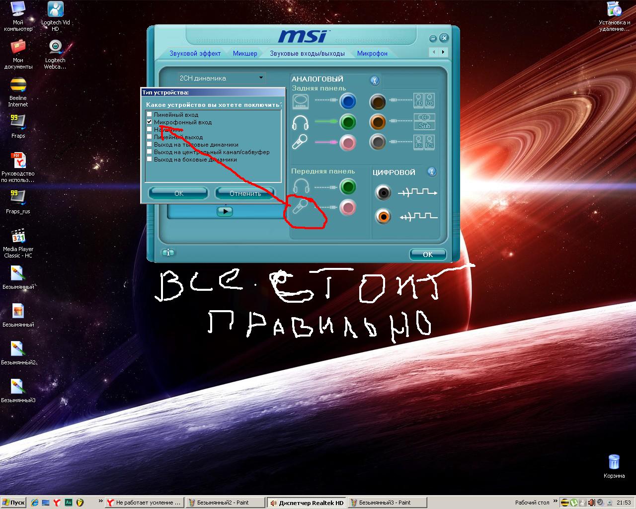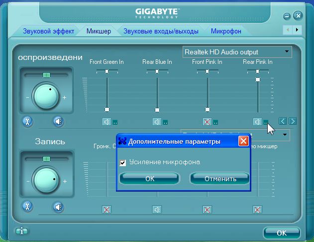 Не работает усиление микрофона на Realtek High Definition Audio под Windows XP