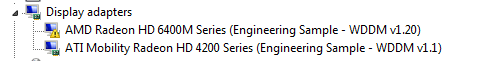 заходи в диспетчер устройств. правой кнопкой на 6400М выбирай "Updata Driver Software" - "Browse my computer for driver software." - "Let me pick from a list of device drivers on my computer" - "Have disk" - выбираешь .inf файл в папке куда распаковал дрова - "Next" на встроенное видео 4200 которое я точно не помню где дрова брал, но у меня написано в диспетчере "AMD M880G with ATI Mobility Radeon HD 4250" так что ищи дрова на встроенку и также вручную ставь |