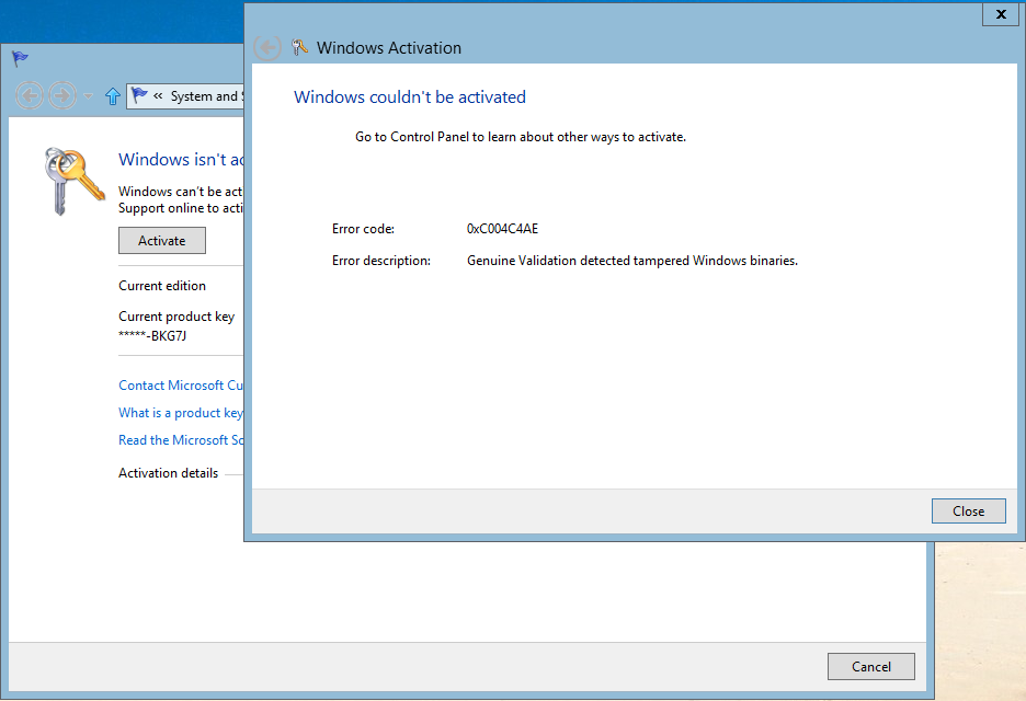 Переустановил восьмёрку, вводил ключ с сайта Microsoft, но при подключении к интернету активация выдаёт ошибку (на снимке). Извечный вопрос - что делать?