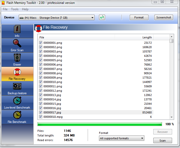 Винда видит флешку как диск H , пишет размер ,7.537 мб (но в свойствах пишет 0мБ) Диск не открывает просит форматировать. Программой Disk Recovery Wizard , просканировал , удалил файлы . Прога FlashMemoryToolkit_2 . после сканирования не нашла ошибок, форматировать отказывается.В остальных прогах все процессы заканчиваются с ошибками.