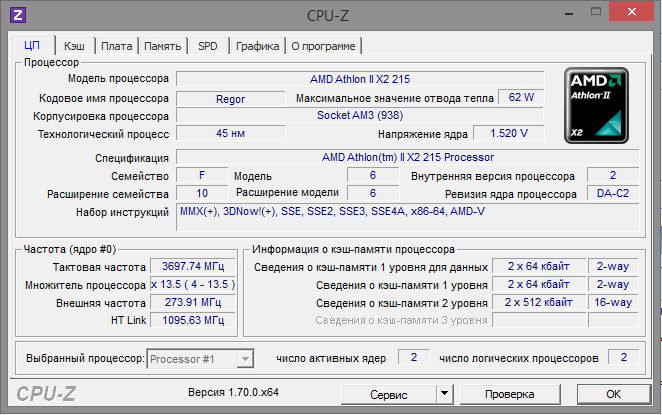 Разгон AMD Athlon(tm) II X2 215 Processor
