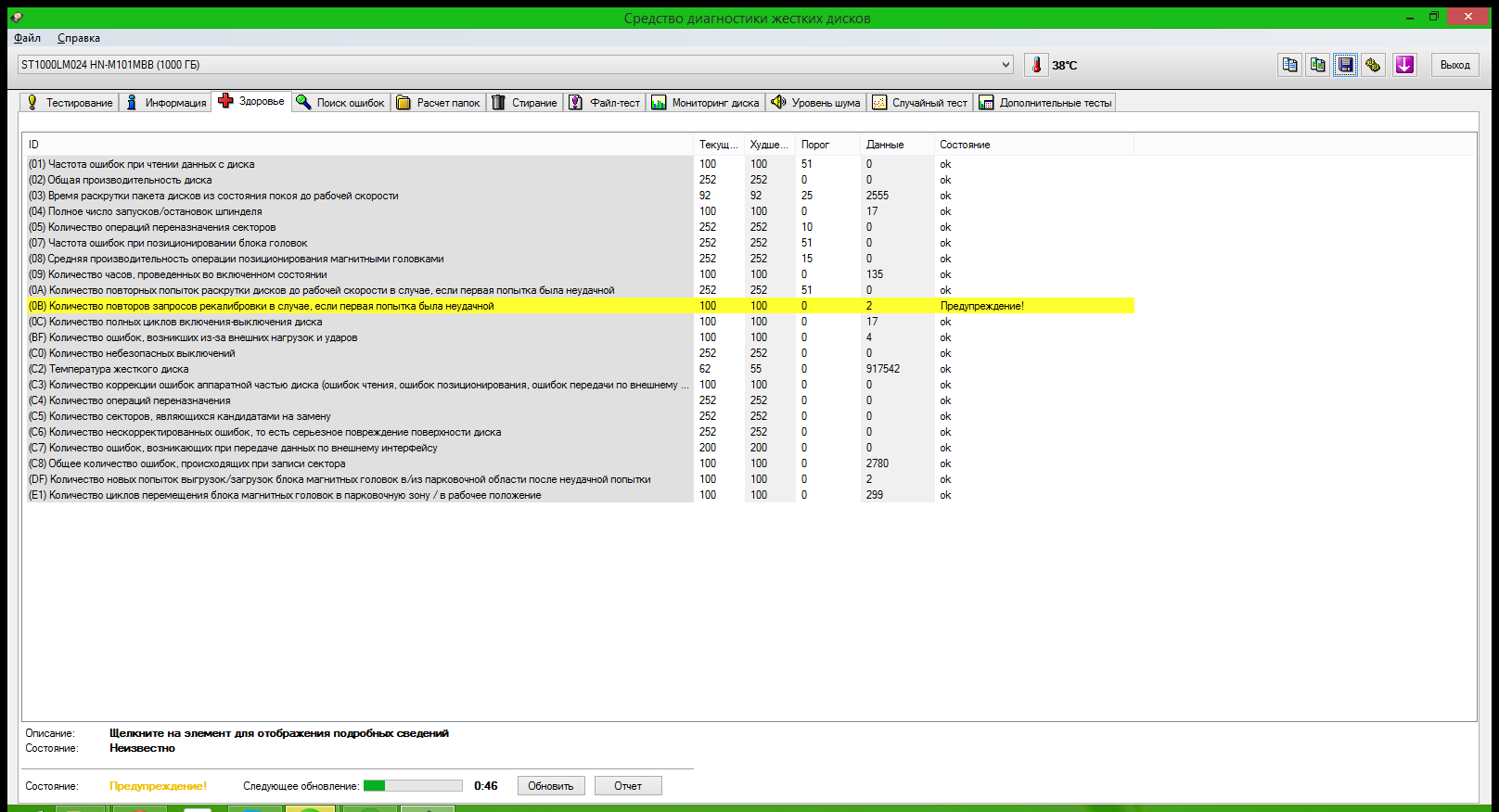 A.A.K., нет, это ноутбучный диск, плюс ноутбук на гарантии, и это буквально после пары недель после того, как мне заменили ЖД на новый. Потому и кажется, что такое поведение жесткого диска немного нездоровое. Конечно, Recalibration Retry Count не такой уж страшеный параметр (насколько я понял из гугления, это часто встречается на жестких дисках в ноутбуке и связано со случаем парковки головок во время встрясок). А вот ошибки чтения, растущие с такой скоростью, меня немного смущают.