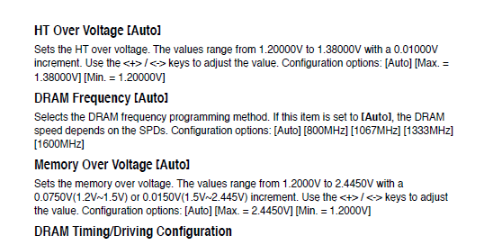 ![]() Если бы было строго соответствие написаному в биосе с тем, что написано на оверклокере, тогда бы и вопросов не было. Вы хоть выдержку из инструкции выделили, и то вопрос с выделенным зеленым остался. |
