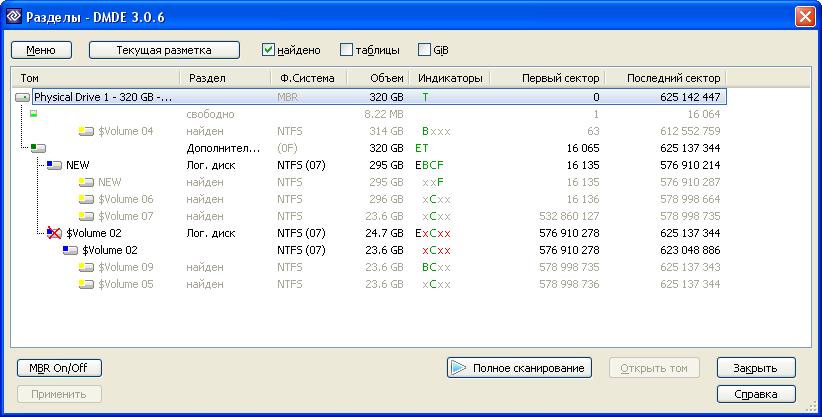 1. Как DMDE в окне Разделы диска находил что-то нехорошее в ФС тома $Volume 02, так и после чекдиска индикатор F не появился… 2. Но главное, --- меня ставит в полное недоумение первая файловая запись MFT ID=0. В этой записи отсутствует атрибут типа File Name. Это атрибут всегда должен быть резидентным и имя должно быть $MFT… А так эта запись MFT вполне корректна и целостность её не нарушена…. Я не знаю, --- как такое могло получиться. Но так есть. И почему чекдиск это спокойно пропускает...???... LVitya, эти мои размышлизмы носят скорее академический характер… Вам нужно: ======== 1. Зарезервировать данные на сторонний носитель. 2. Разбить хард на нужное количество и размер разделов средствами Windows, --- не используйте никаких акролнисов и подобных утилит. ЗЫ Радуйтесь, что ещё легко отделались и не потеряли данные… 3. Инсталлировать Windows и нужные программы. 4. Вернуть данные из резерва… Вот, примерно, так Вам надо поступить… |