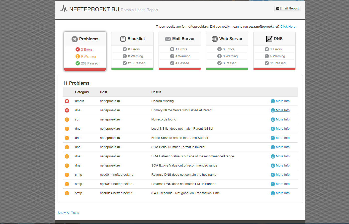 Отправляющий сервер nps0014.nefteproekt.ru? В SMTP HELO при отправке какое имя прописано? Для nps0014.nefteproekt.ru PTR записи не вижу. »