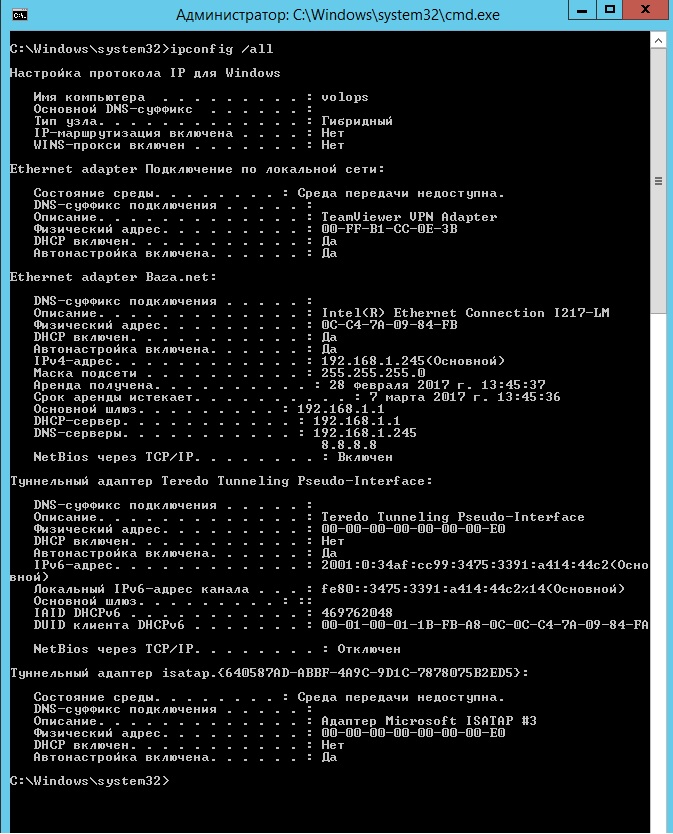 Здравствуйте. Прошу строго не судить. Имеем Windows Server 2012 R2 Standart. На нем запущен SQL и 1С-сервер. Из ролей только DNS. По vpn к нему подключаются клиенты для использования ключа защиты конфигурации 1С. Изначально было неудобочитаемое длинное имя хоста. Сгоряча переименовал через графический интерфейс, не прибегая к утилите netdom. Возникли проблемы с запуском sql-баз, но этот вопрос решил. Но теперь на удаленных станциях при попытке взять ключ возвращает старое DNS-имя. После очистки кэша dns появляется запись, содержащая старое имя. На скринах это видно. Новое имя - volops, старое - WIN-EPF4AO1OQOE.mshome.net. При попытке добавить альтернативное имя пишет - Отказано в доступе. (netdom computername WIN-EPF4AO1OQOE.mshome.net /add:volops.mshome.net) При этом с самого сервера пингуется имя volops и WIN-EPF4AO1OQOE, возвращает 192.168.1.245. Как избавиться от имени WIN-EPF4AO1OQOE??