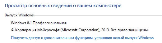 Здравствуйте. Установил Win_8.1/64_Pro и в свойствах системы обнаружил строку "Получить доступ к дополнительным функциям, установив новый выпуск Windows" хотя повышать дальше некуда. Подскажите как избавиться от этой строки?