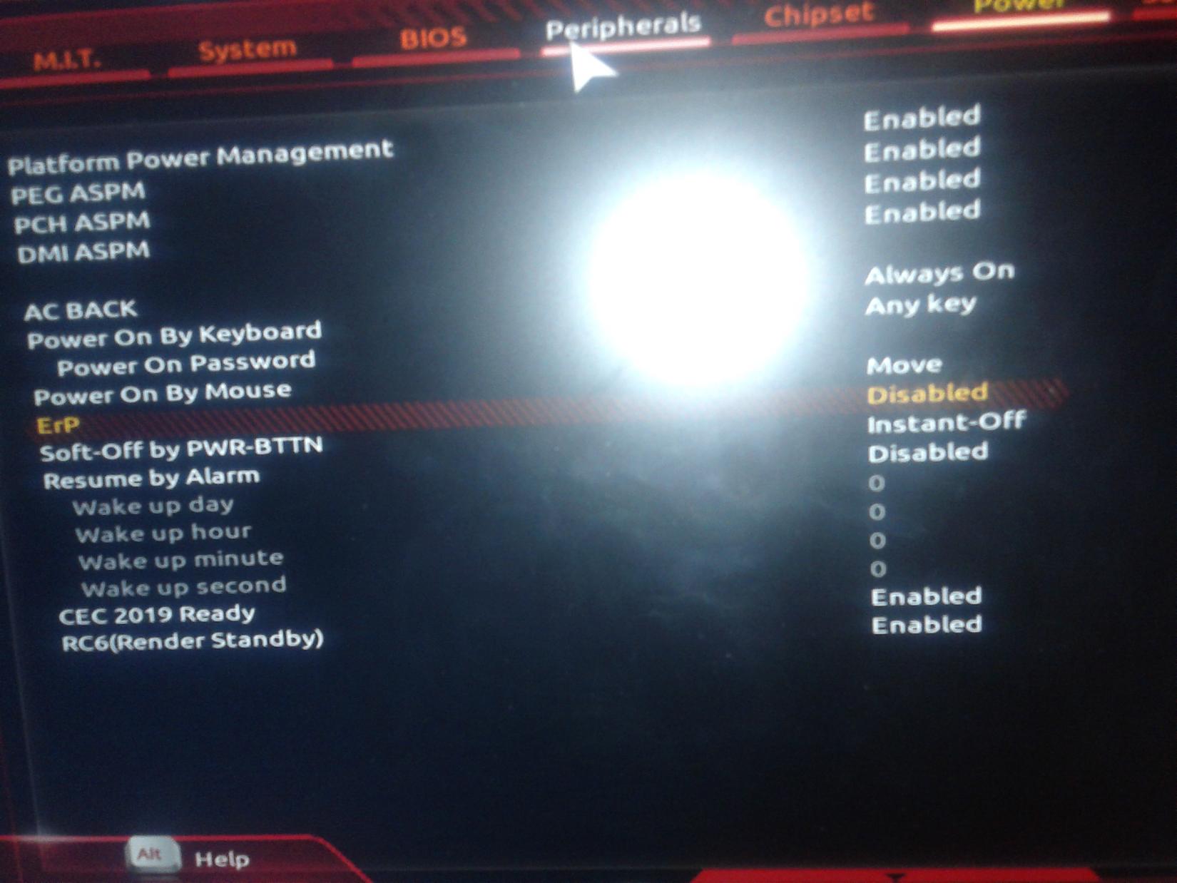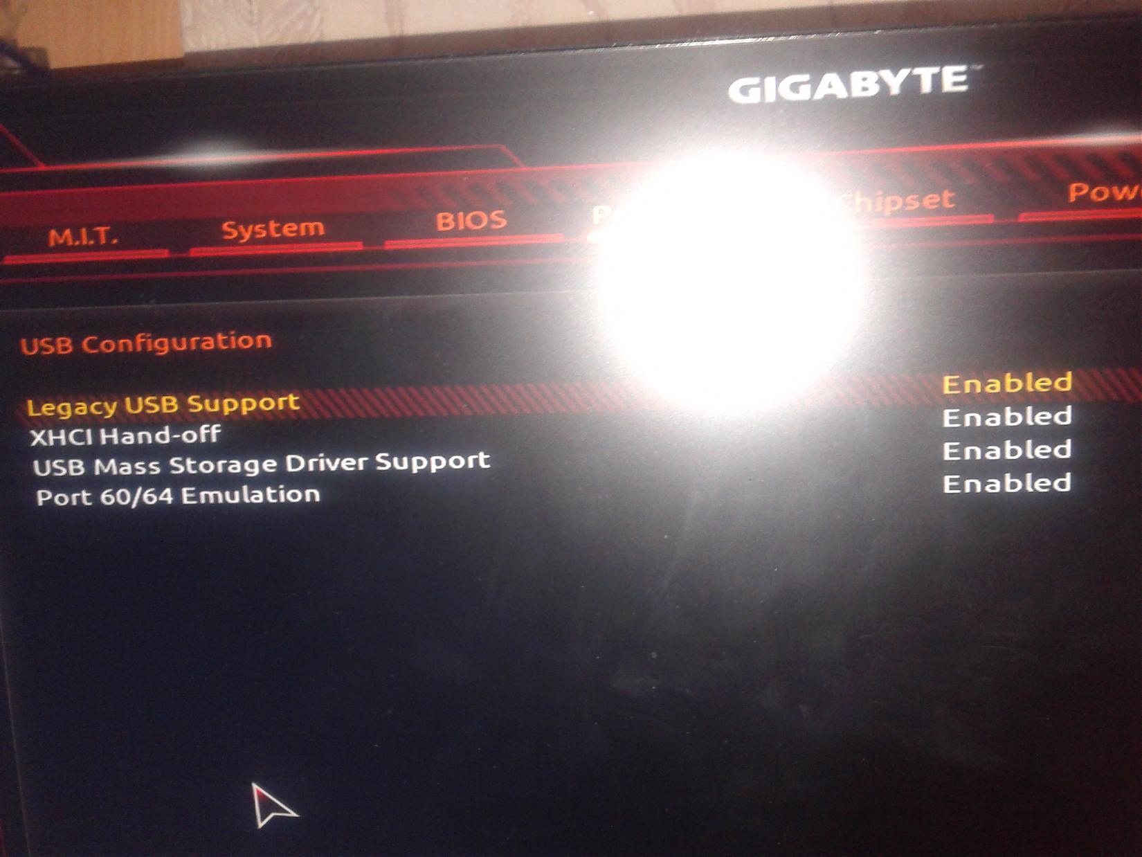 Мать Gigabyte Z370P D3, Windows 10, клавиатура USB. Изначально все включалось норм. Потом перестало. В винде я точно ничего не трогал, на счет биоса - не помню. В системе везле поставил/поснимал галочки на usb-устройствах, что бы позволяло будить - нифига. Вот две фотки биоса. Питание на usb есть - телефон заряжается. Если загнать винду в спящий режим, то на клавиатуру реакция будет.