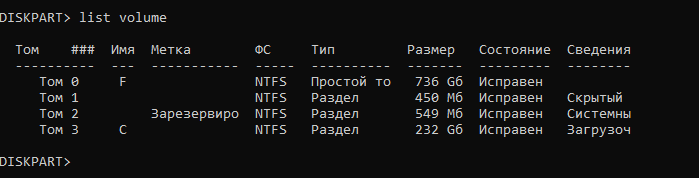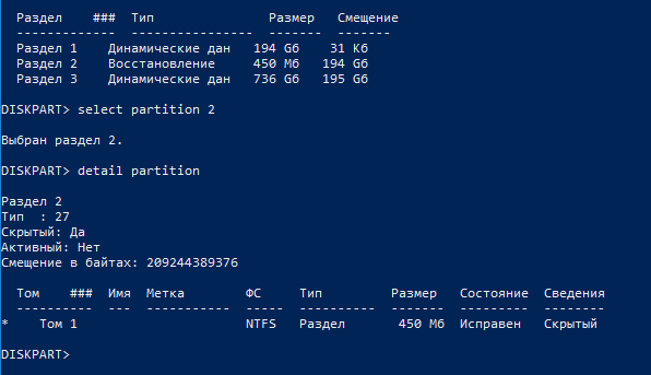 DISKPART> select disk 1 Выбран диск 1. DISKPART> select partition 2 Выбран раздел 2. DISKPART> delete partition override Ошибка службы виртуальных дисков: Эта операция не поддерживается объектом. Указанная команда или параметры не поддерживаются в данной системе. DISKPART> |