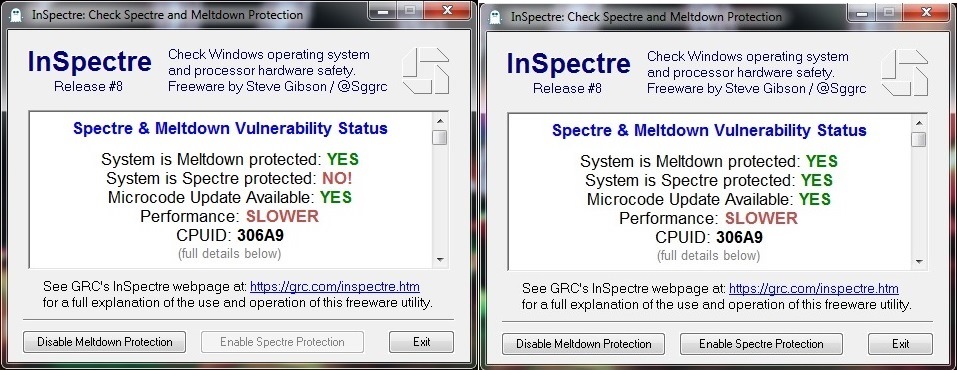 Источник - слепо копировать всё не стал, тем более что ссылка на микрокоды для процессоров Intel там не совсем корректная, да и в целом достаточно много лишнего. Протестировано на процессорах Core i5-3340, Pentium G840: скриншот (слева до, справа после обновления микрокода). Прямая ссылка на InSpectre для особо ленивых: скачать. |