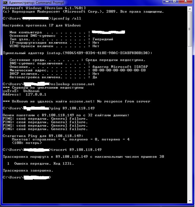 Выложите результаты команд при подключении к сети: ipconfig /all nslookup oszone.net ping 89.108.118.149 tracert 89.108.118.149 |